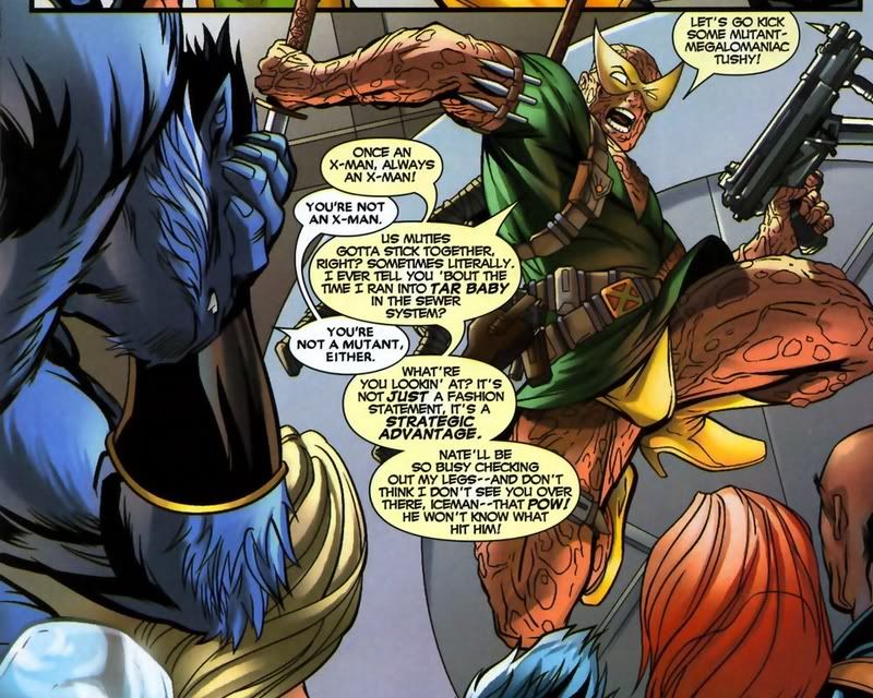 Deadpool paused, cocking his head to the side. "Isn't she in space with that alien Wolverine?"