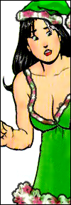 Then again given her current outfit, she really, really might cry anyway. "I love the Christmas spirit, really I do," she said as she walked over carrying strategically-placed books that utterly failed to help. "But dear God."