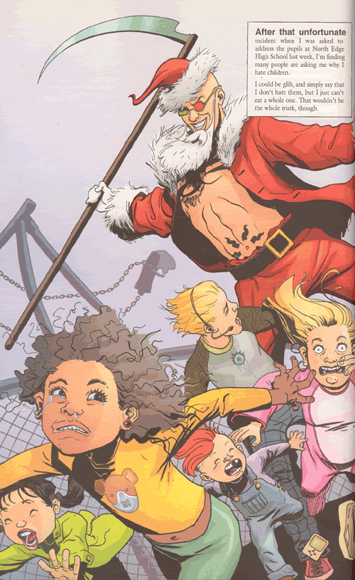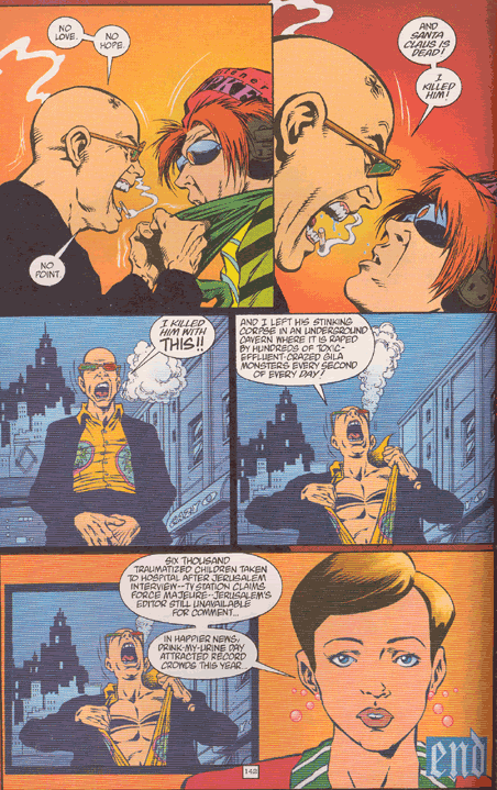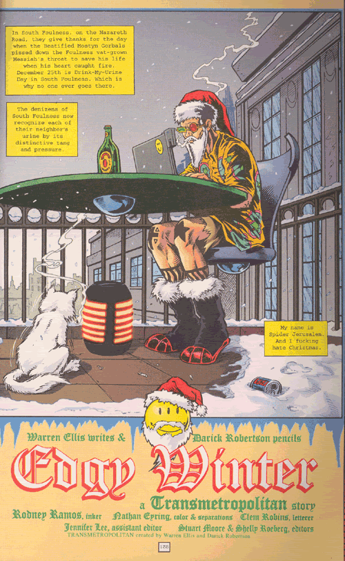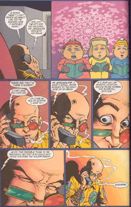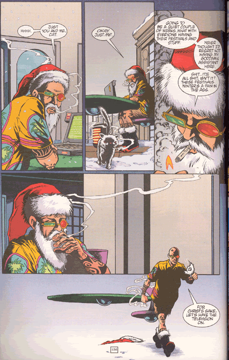 There's a page missing here, damn it. Will correct when I can. Basically, a newsfeed reporter made the mistake of approaching Spider and asking him, jocularly, how he was going to celebrate the holidays and who with.