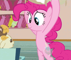 "Bread making is super-duper loads of fun," Pinkie said, letting out little puffs of flour as she spoke. "There's loads of mixing and kneading and rising and pounding and rolling and sprinkling and. . . ." This just kept going. With appropriate hoof-gestures for each verb. It was possible she would continue quietly listing baking verbs in the background soundtrack for the rest of class.