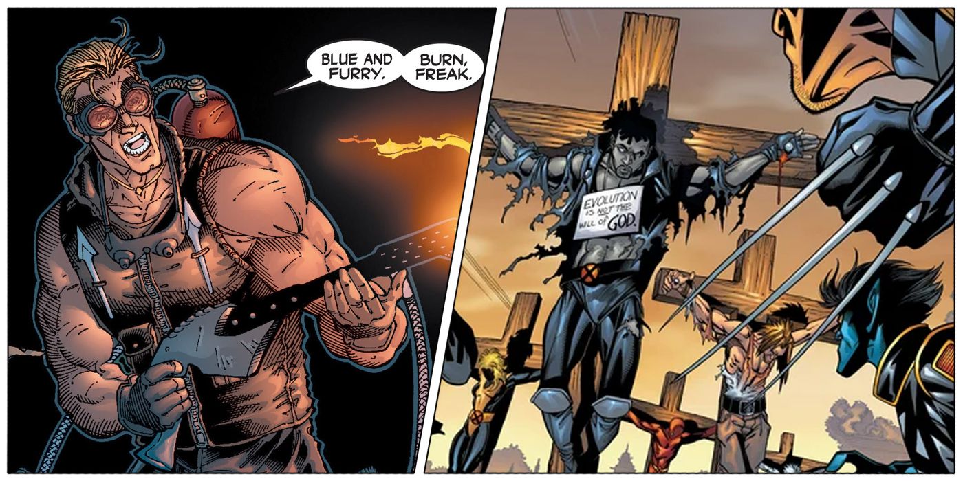 “There are the Purifiers who want to as their name implies purify humanity of the Mutant gene. There’s the Church of Humanity (and yes that IS a version of Kurt he is talking about there). The Friends of Humanity are definitely no friends to Mutants. And then there’s the group that calls themselves The Right. So… yeah. There’s plenty of propaganda to be seen. It’s… it’s something we Mutants fight against on a regular basis.”