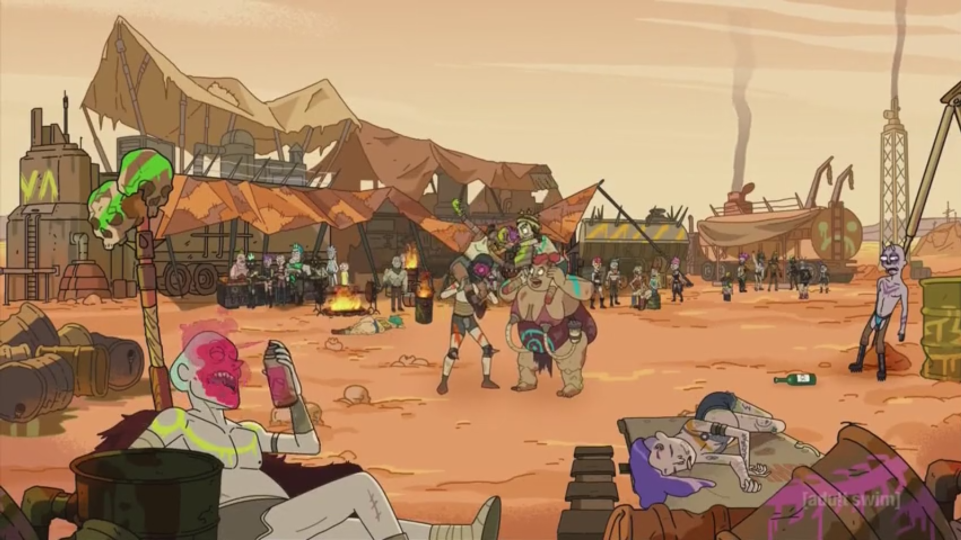 You can hang around the settlement and get to know some of the friendly looking locals, or you can gear up to fit in with an assortment of metal scraps, leather, and body paint! If you're really ambitious, you could compete in the BLOOD DOME, or just raid the land in any assortment of stupid vehicles at your disposal! You can even scavenge for scraps and isotopes to GTFO of here in a Seattle that's seen better days, just watch out for the mutant hordes!