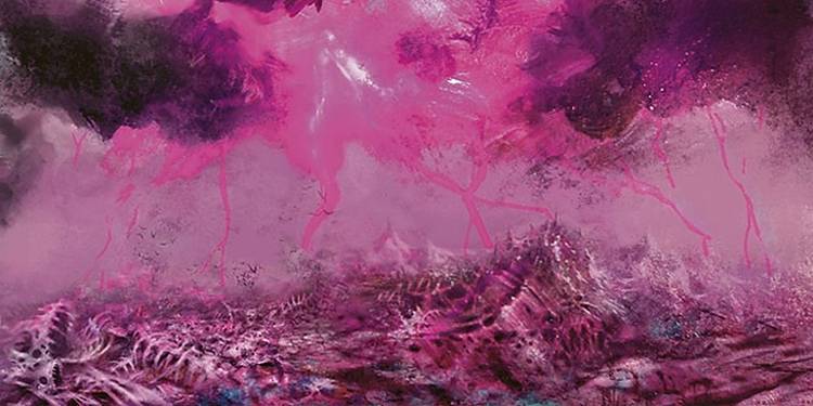 The plane that awaited Liliana's students in the Danger Shop was something straight out of a nightmarescape. Even the ground beneath their feet was foul; any surface that wasn't bare rock or murky seawater was made up of rotted flesh and piles of bones, as if the entire plane is a gigantic slab of corpses. Dead bodies were everywhere, either whole or in parts, and traveling anywhere meant stepping on hills of diseased flesh or climbing up mounds of festering bones. The stench of death was strong on the ever-present wind, the sky was shrouded with thick gray clouds like dirty funeral shrouds, roiling with thunder and spitting violet lightning.