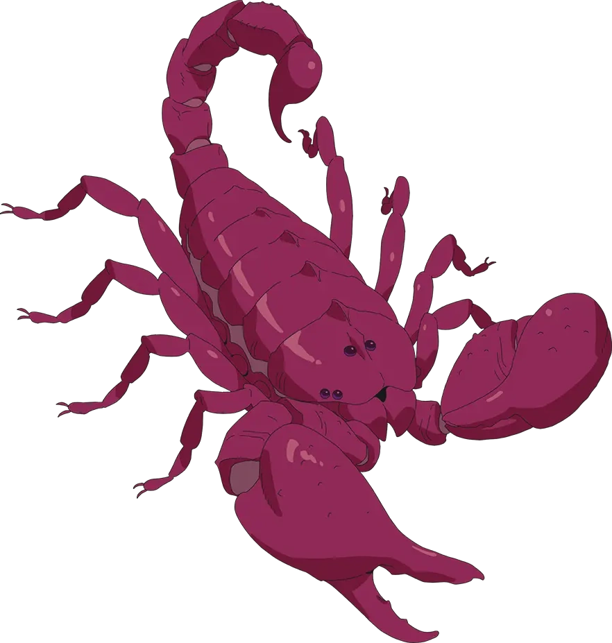 Huge Scorpion: "Chop off the pincers, legs, head, and tail - especially the tail. Gives you the runs somethin' fierce. You won't die but also, it tastes like ass. Next, you have to slice the sucker up so it heats up even and the juices can seep out. This way, you get all the flavor and it's easier to eat this way. Followin' the scorpion's own segments makes that part easy. Then you pull out the innards like so, like de-veining a shrimp. They're bitter and the texture's all wrong, unless you pickle 'em and serve 'em with beer. The shell'll turn red once it's been boiled and the meat shrinks, makin' it much easier to pull away from the shell."