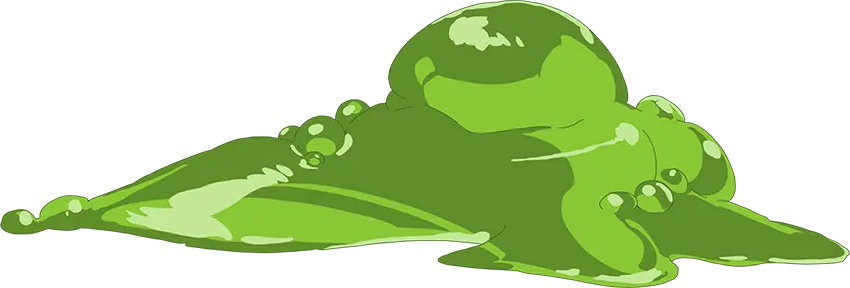 "The last monster to watch out for is the slime. Of the three of 'em, slimes are the most dangerous and have the highest likelihood of killin' you. Slimes are goopy green blobs about the size of a humanoid's head. Normally, they don't usually attack people; they're parasites that tend to lurk near water and wait for aquatic creatures to swallow 'em, then cling to their host's stomach and feed off of their meals before movin' into their bowels to reproduce, and are expelled from the body with the rest of the waste. On land and far from water, they make due, usually by clingin' to the ceilin' and droppin' down when they sense prey beneath 'em. They can sense your breath and like to attack when you exhale, landin' on your head and suffocatin' you with their ooze bodies. Don't shout and try not to hyperventilate and you'll usually avoid their notice. If you do end up gettin' a slime on your face, the trick is to not panic. Slimes are real easy to kill with a knife, so long as you know how its organs are laid out."