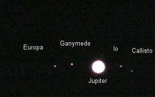 "Jupiter has at least 63 moons. The four largest moons are known as the "Galilean moons" -- Io, Europa, Ganymede and Callisto. If you have a steady hand, you might be able to see some of the moons through your binoculars. Galileo's discovery of these moons was further evidence that the Earth was not the center of the universe.