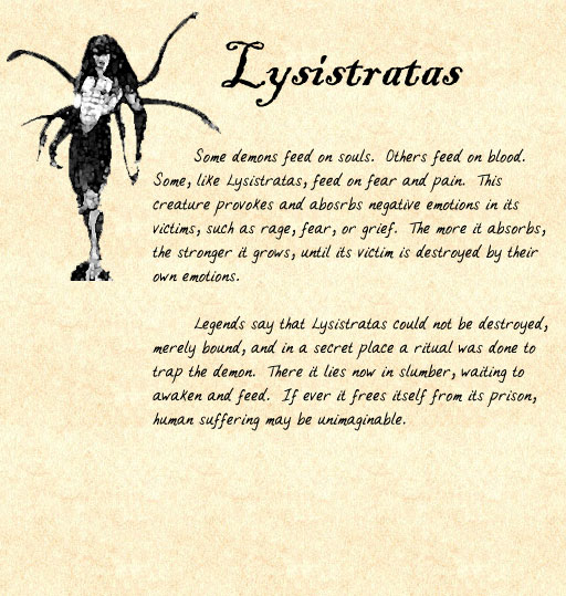 She saw a group of people, faces she sensed she recognized flashing by too quickly to identify, standing in a circle. They were chanting as one in the center wound a ribbon around something. Suddenly a tentacle erupted from the earth outside the circle, slithering along the ground as it reached for the center person. There were more people outside the circle, and these attacked the tentacle, chopping it to pieces before it could find its target. Another tentacle snaked from the ground, then another.