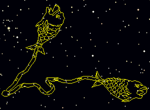 "According to one version in Greek mythology, this constellation represents fish into which Aphrodite and her son Eros transformed in order to escape the monstrous Typhon. The two fishes are often depicted tied together with a cord (or their tails), to make sure they do not lose one another.